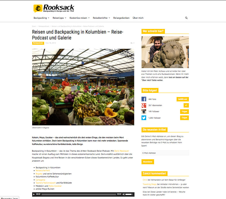 Interviews Podcast Reisen und Backpacking in Kolumbien im Gespräch mit Rooksack.de, 18.11.2012 lesen & reinhören >>