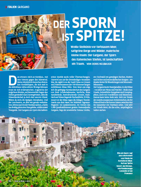 Meine Arbeit schwarz auf weiß Gargano. Italiens schönstes Stück. erschienen in: REISE & PREISE August/September/Oktober 2014 Artikel lesen >>