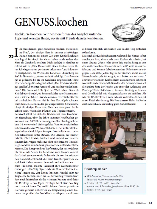 Meine Arbeit schwarz auf weiß Knödelkochkurs Grünberg am See erschienen in: Genuss.Magazin, 5/2015 Artikel lesen >>