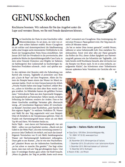 Meine Arbeit schwarz auf weiß Italienischer Pasta-Kochkurs erschienen in: Genuss.Magazin, 6/2015 Artikel lesen >>