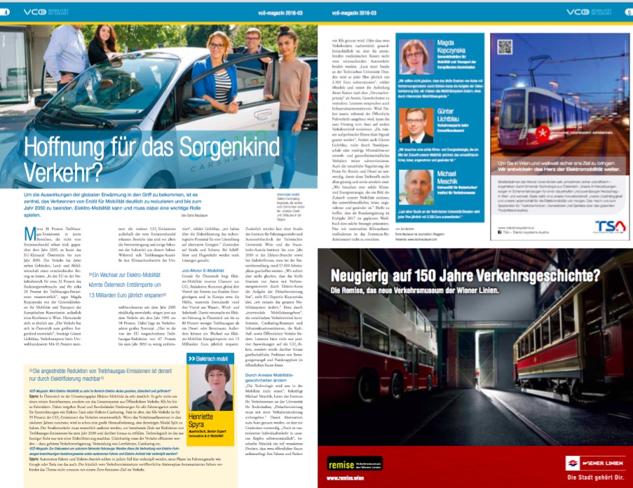 Meine Arbeit schwarz auf weiß Hoffnung für das Sorgenkind Verkehr? erschienen in VCÖ Magazin 3/2016 Artikel lesen >>