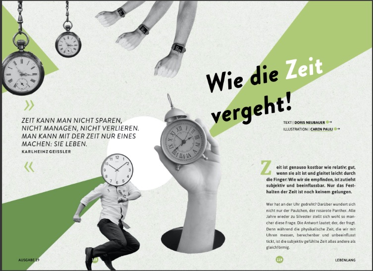 Meine Arbeit schwarz auf weiß Wer hat an der Uhr gedreht? erschienen in LEBENLANG Nr. 19 Artikel lesen (S. 18 ff)