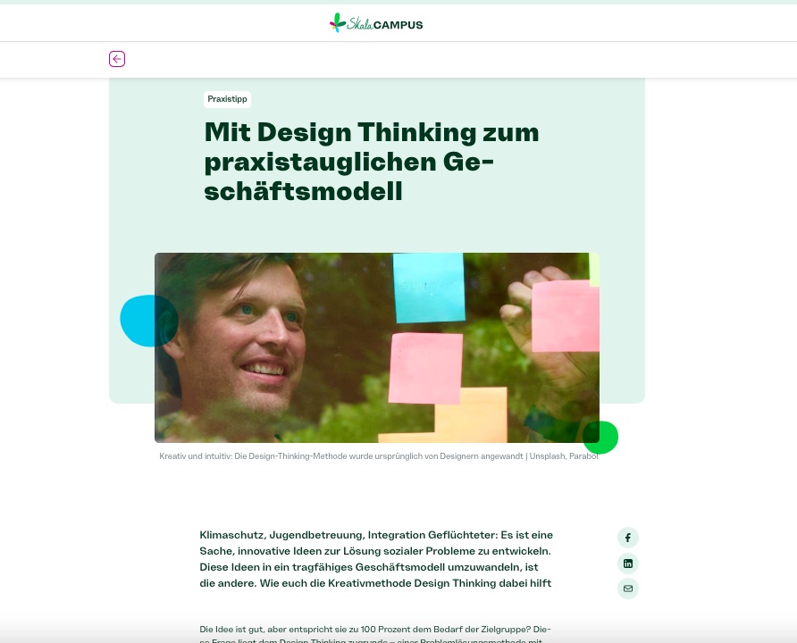 Meine Arbeit schwarz auf weiß Mit Design Thinking zum praxistauglichen Geschäftsmodell – und andere Beiträge auf Skala-Campus.org Artikel lesen >>