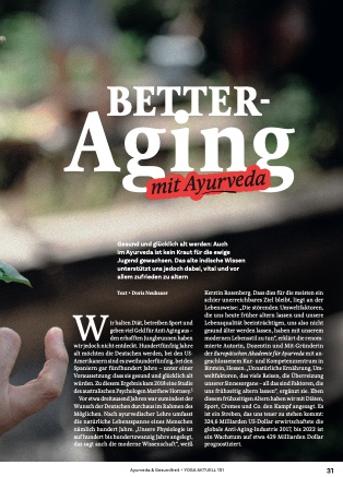 Meine Arbeit schwarz auf weiß Better Aging mit Ayurvedaerschienen in Yoga Aktuell 131(S. 30 – 33)Artikel lesen
