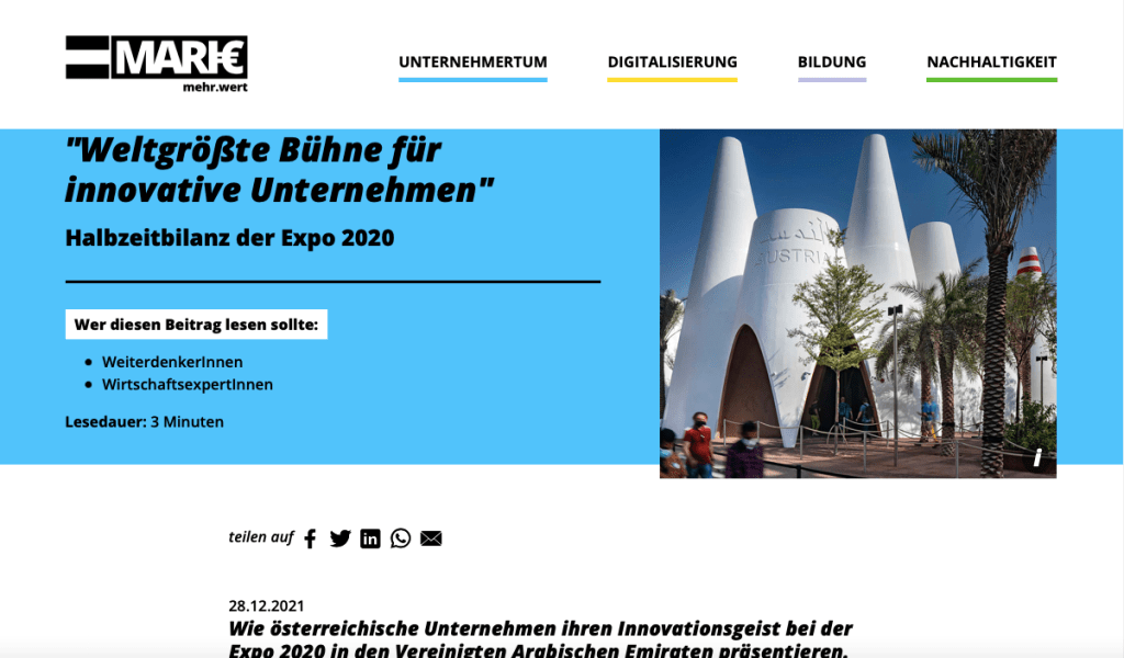 Meine Arbeit schwarz auf weiß Weltgrößte Bühne für innovative Unternehmenund weitere Beiträge auf Mari€.WKO Blog Artikel lesen >>