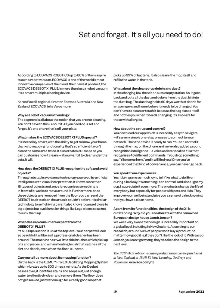 Meine Arbeit schwarz auf weiß Ecovacs Robot Vacuum Enhancing life, one clean at a timeVervemagazine Sep 2022 >>