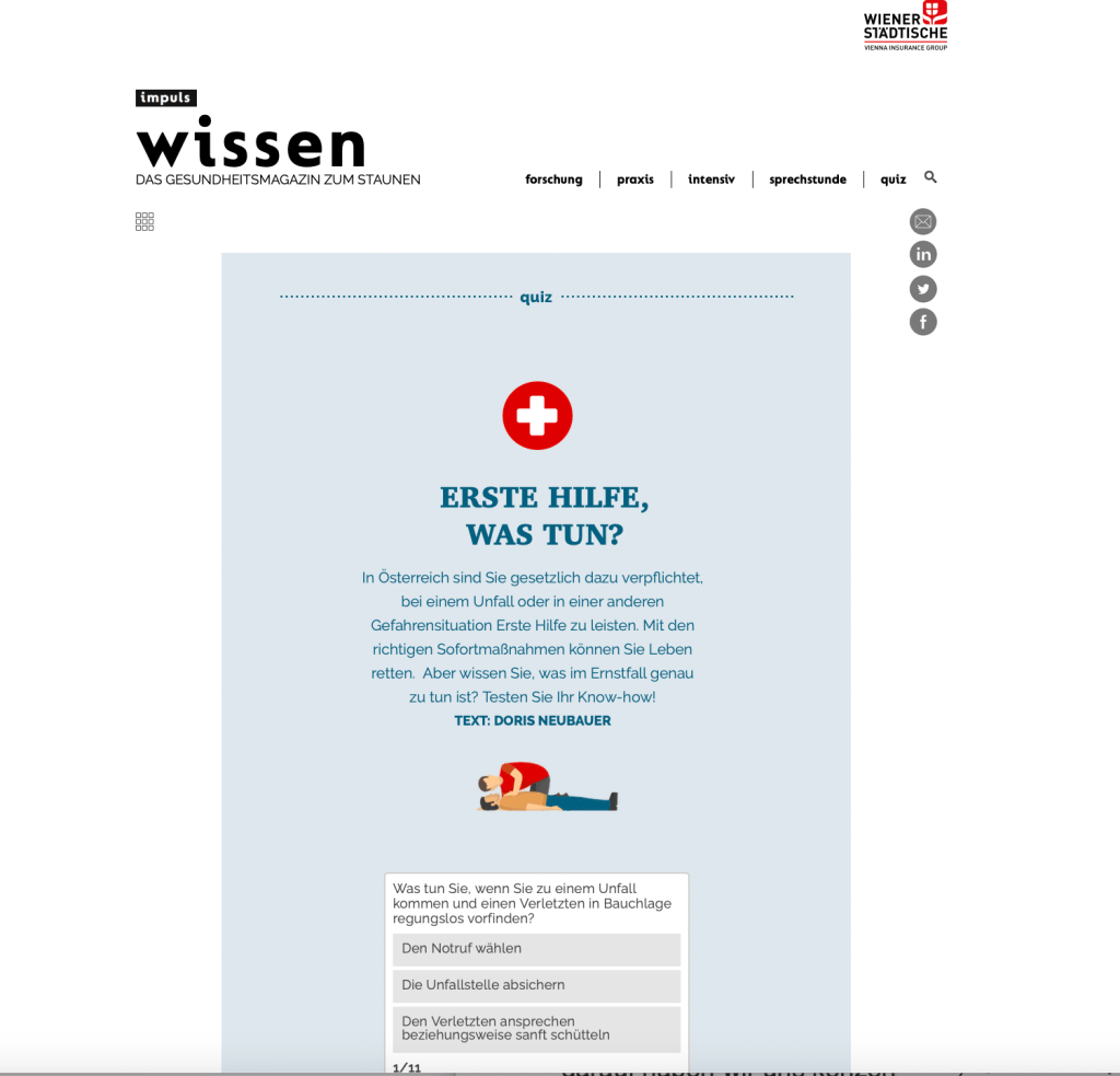 Meine Arbeit schwarz auf weiß Quiz: Erste Hilfe, was tun? erschienen auf Impuls WissenWissen testen>>