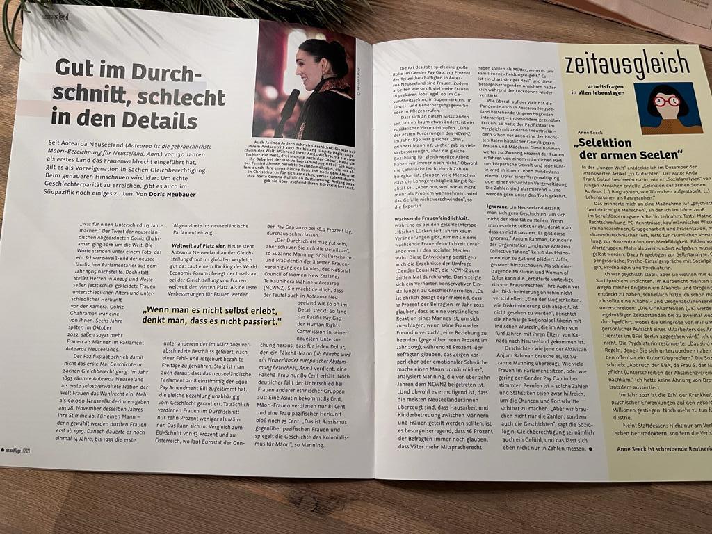 Meine Arbeit schwarz auf weiß Gut im Durchschnitt, schlecht in den Detailserschienen in an.schlaege das feministische Magazin 01/2023