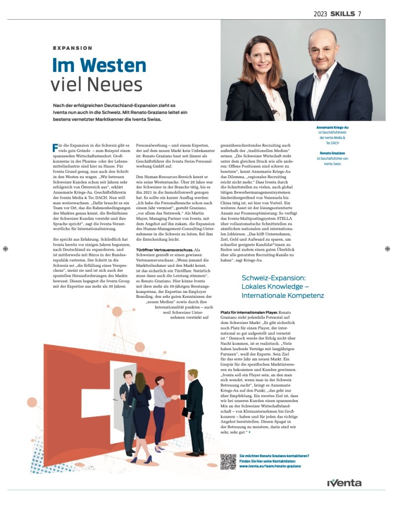 Meine Arbeit schwarz auf weiß Im Westen viel Neues +Mut zum (kalkulierten) Risiko erschienen in Skills/Iventa Magazin S. 7 ff