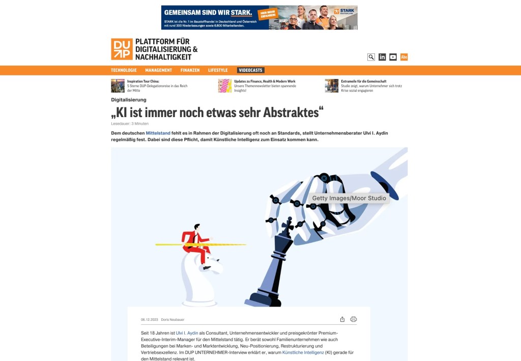 Meine Arbeit schwarz auf weiß „KI ist immer noch etwas sehr Abstraktes“erschienen im DUP Magazin, 6.12.2023Artikel lesen >>