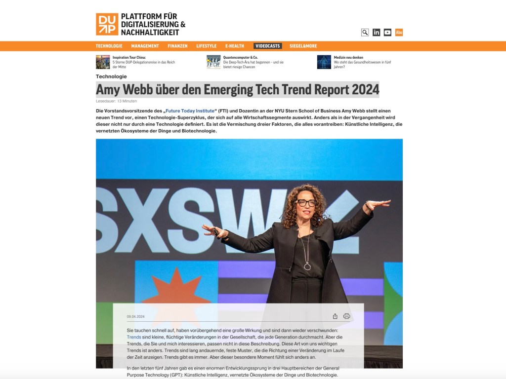 Meine Arbeit schwarz auf weiß Amy Webb über den Emerging Tech Trend Report 2024erschienen in DUP MagazinBeitrag lesen >>