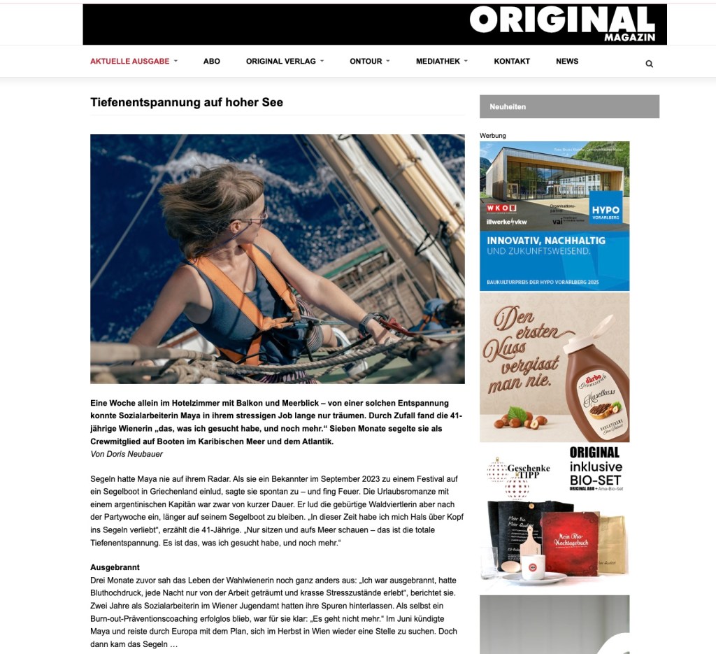 Meine Arbeit schwarz auf weiß Tiefenentspannung auf hoher Seeerschienen in Original Magazin 4/2024Artikel lesen >>