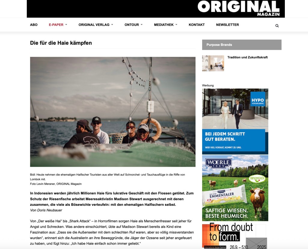 Meine Arbeit schwarz auf weiß Die für die Haie kämpfenerschienen in Original Magazin Sept 2025Artikel lesen >>