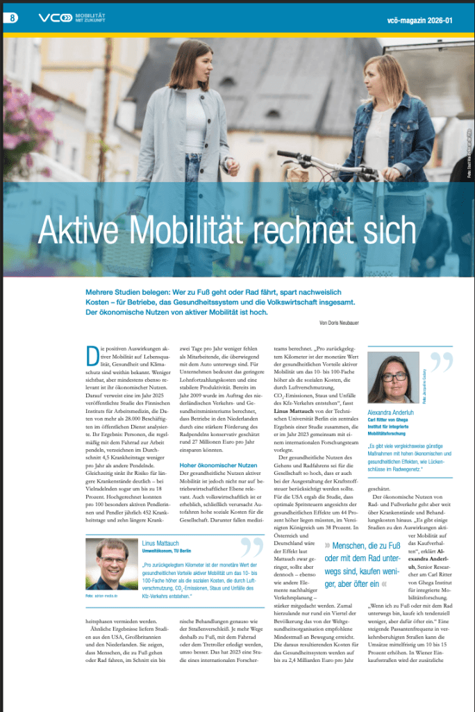 Meine Arbeit schwarz auf weiß Aktive Mobilität rechnet sich erschienen in VCÖ Magazin 1/2026Artikel lesen (S. 8 f)>