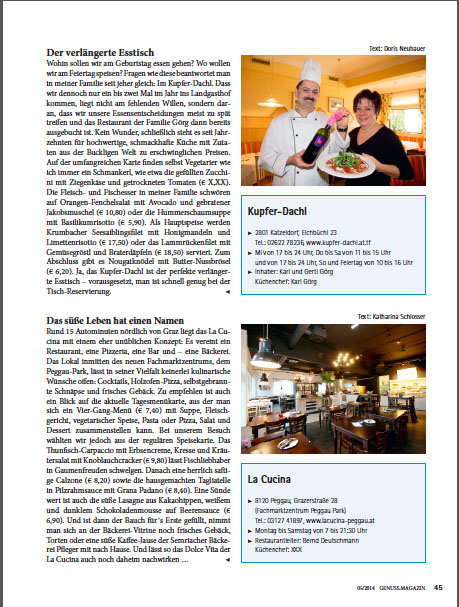 Deutsch, Lebendiges, Meine Arbeit schwarz auf weiß, Print Lokale erschienen in: Genuss.Magazin 5-2014 Artikel lesen >>